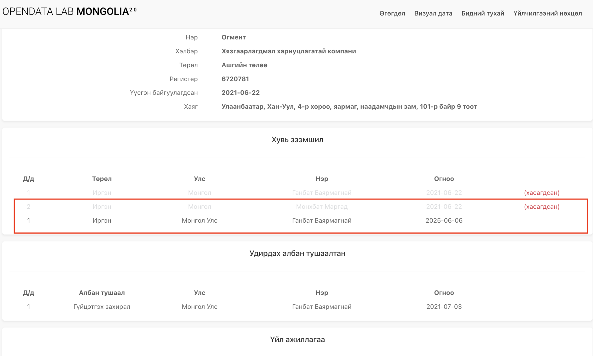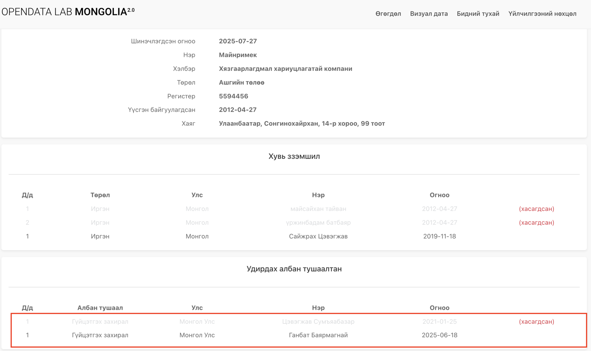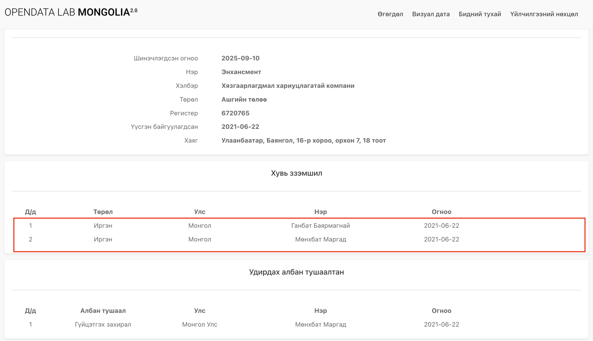 Хамгийн сонирхолтой нь эдгээр компаниуд бүгд Ганбатын Баярмагнай, Мөнхбатын Маргад гэх өөр хоорондоо холбоо хамааралтай хүмүүсийн аж ахуй нэгжүүд ажээ.