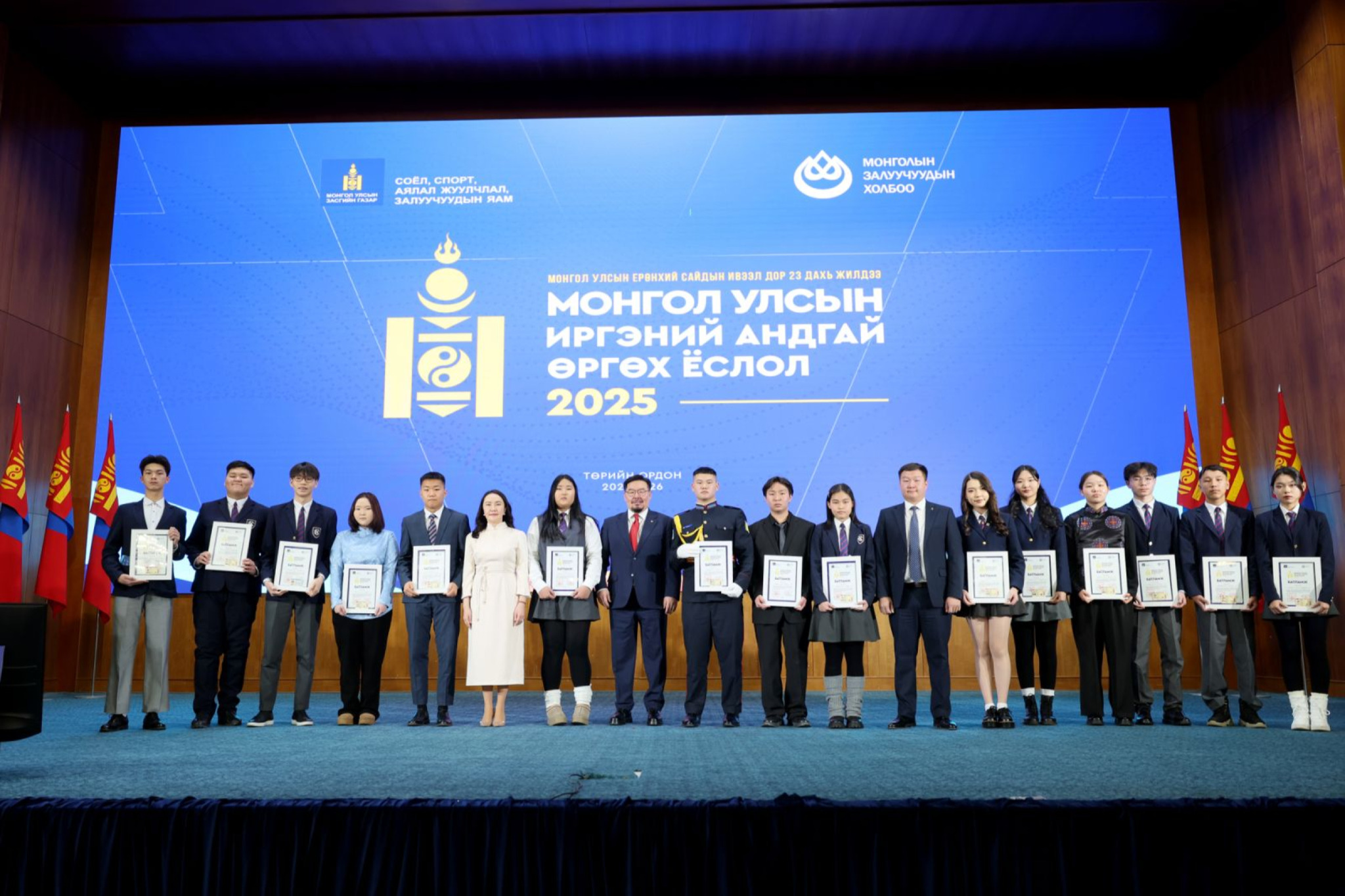 “Монгол Улсын иргэний андгай өргөх ёслол” боллоо. Уг ёслолыг Монгол Улсын Ерөнхий сайдын ивээл дор жил бүрийн 11 дүгээр сарын 26-ны өдөр зохион байгуулдаг уламжлалтай. Энэ жил 63137 хүүхэд 16 нас хүрч байна. Тэдний төлөөлөл болж 850 хүүхэд Төрийн ордонд иргэний андгайгаа өргөлөө.