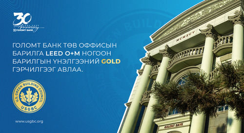 Голомт банкны төв оффис АНУ-ын Ногоон Барилгын Зөвлөлийн LEED O+M стандартын “GOLD” гэрчилгээг авлаа